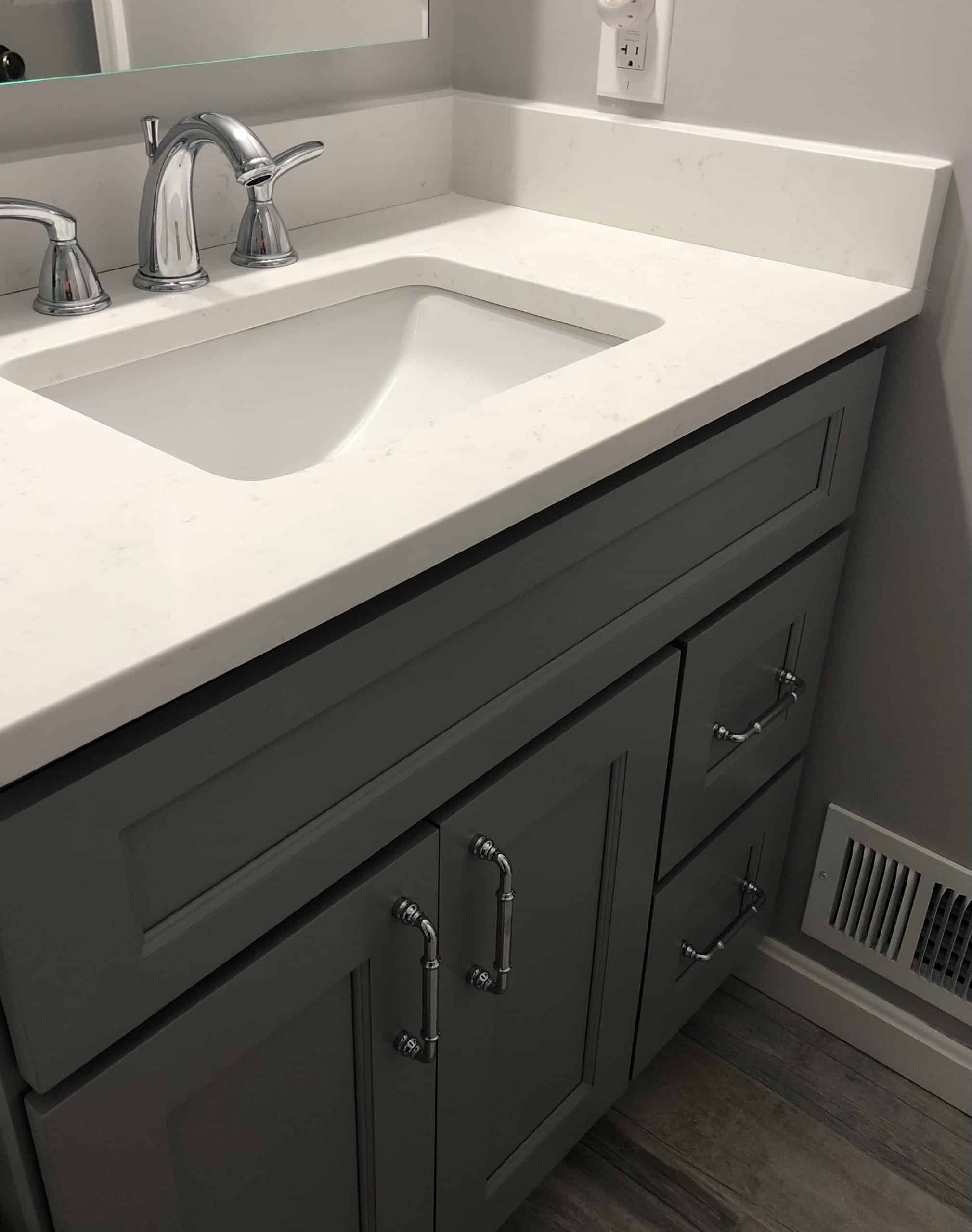 A heavy material, quartz countertops are popular countertops in Montgomery County because they are affordable, come in a range of styles and colors, and rarely have imperfections